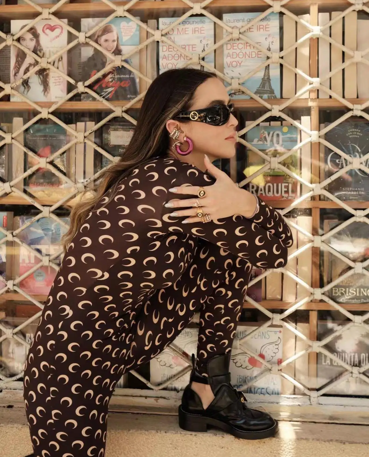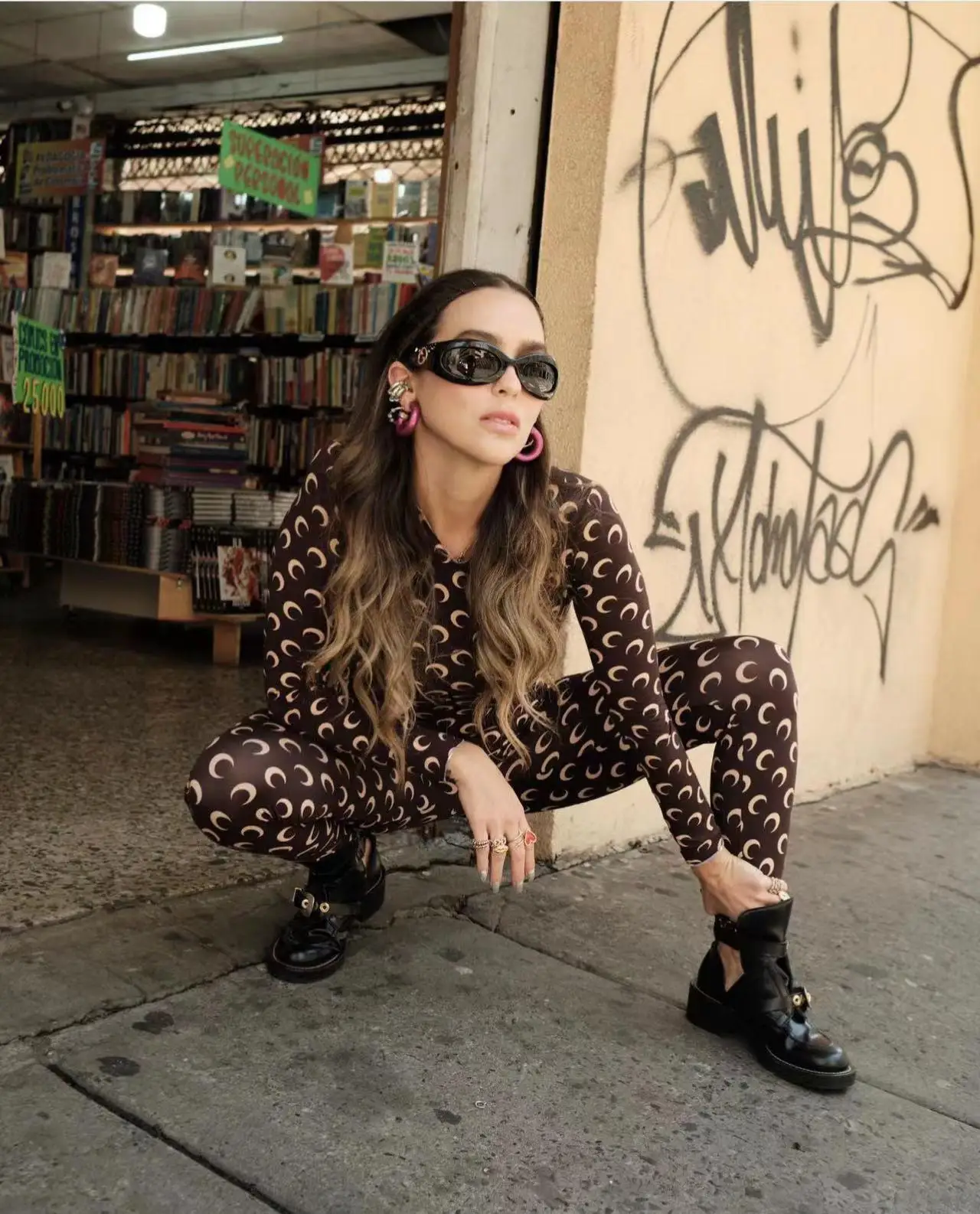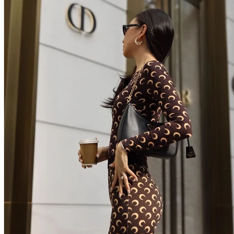 Women Jumpsuit Y2K Streetwear Moon Print Jumpsuit Elastic Long Sleeve Round Neck Autumn Sexy Fashion Bodysuit
